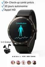 - Monitoreo de datos de salud – Frecuencia cardíaca, número de pasos, sueño, Electrocardiograma integrado + alarma si el corazón late demasiado rápido, Termómetro integrado, calcula el IMC (índice de masa corporal) ¡y mucho más!